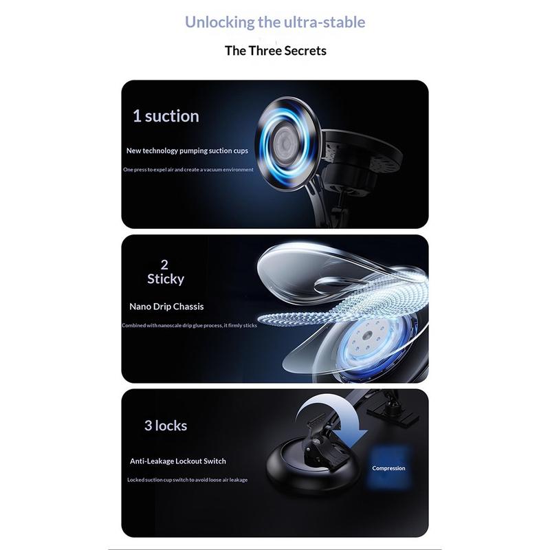 - Mocna przyssawka z nano-klejem zapewniająca pewne mocowanie