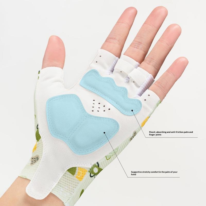 Rękawiczki rowerowe dla dzieci Rockbros z wzorem z kreskówek / Oddychające rękawiczki rowerowe z półpalcami i amortyzującą dłonią