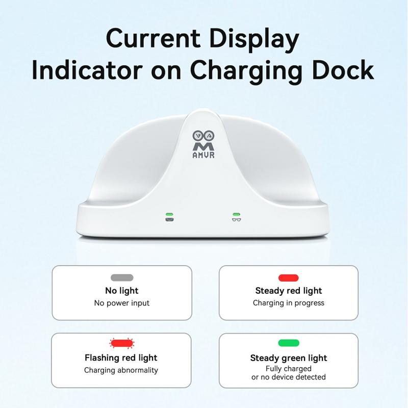 Wystarczy umieścić okulary lub etui na stacji dokującej - jej magnetyczne połączenie natychmiast ustawi je we właściwej pozycji do ładowania. Obsługuje ślepe wyrównanie dla łatwego codziennego użytkowania.