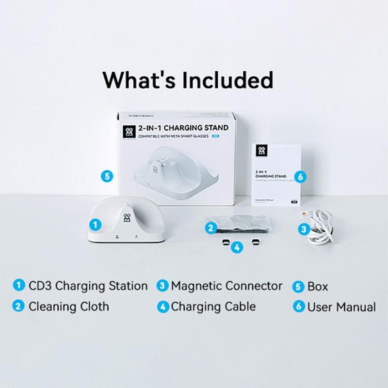 AMVR CD3 zapewnia łatwe wyrównanie magnetyczne, podwójne szybkie ładowanie, informacje zwrotne o stanie w czasie rzeczywistym i silną ochronę bezpieczeństwa, dzięki czemu jest idealnym rozwiązaniem do ładowania dla użytkowników okularów Ray-Ban Meta AI.