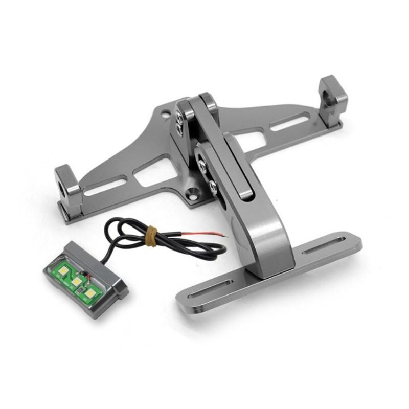 Regulowany uchwyt tablicy rejestracyjnej ze stopu aluminium CNC Uchwyt teleskopowy do oświetlenia rowerowego ze światłem LED - tytanowo-szary