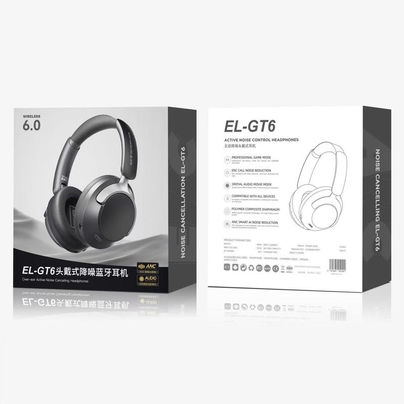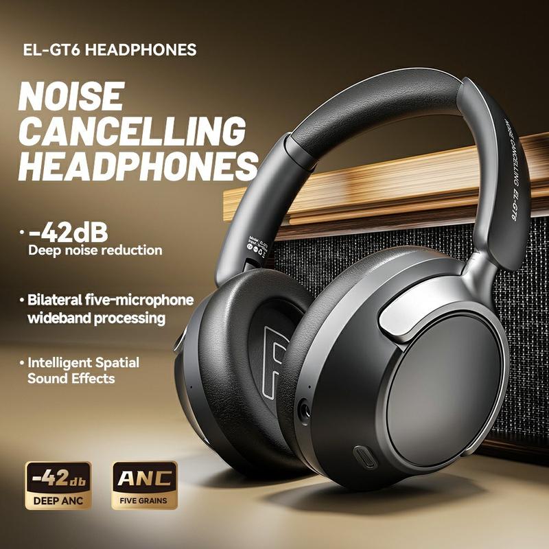 Słuchawki bezprzewodowe EL-GT6 Over-Ear ANC / zestaw słuchawkowy do gier z Bluetooth 6.0, dźwiękiem HiFi, niskim opóźnieniem