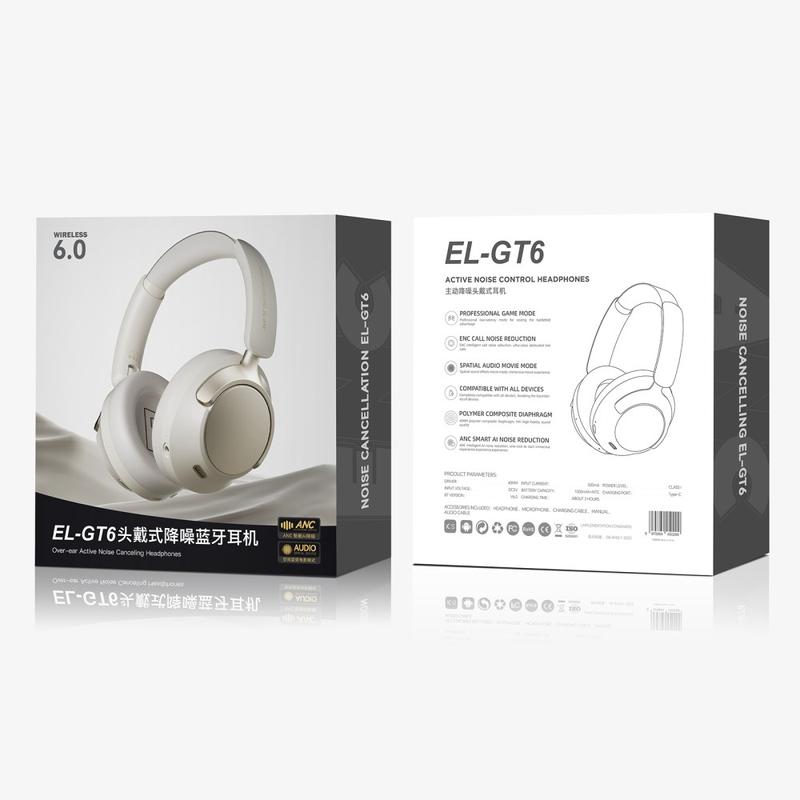 Słuchawki bezprzewodowe EL-GT6 Over-Ear ANC / zestaw słuchawkowy do gier z Bluetooth 6.0, dźwiękiem HiFi, niskim opóźnieniem