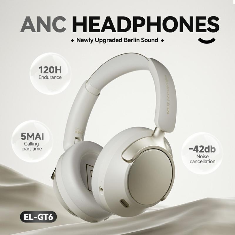 Bezprzewodowe słuchawki z redukcją szumów EL-GT6 ANC zapewniają wciągający dźwięk i długotrwały komfort zarówno graczom, miłośnikom muzyki, jak i profesjonalistom. Wyposażone w zaawansowaną technologię ANC 3.0 z adaptacyjną redukcją szumów, blokują rozpraszające dźwięki i poprawiają wrażenia słuchowe. Wyposażone w 40-milimetrowe przetworniki dynamiczne i kompozytowe membrany mikrokrystaliczne, zapewniają głębokie basy, czyste średnie i wyraźne wysokie tony, zapewniając jakość dźwięku HiFi. Dzięki łączności Bluetooth 6.0, niskim opóźnieniom i do 120 godzin czasu odtwarzania, ten nauszny zestaw słuchawkowy łączy w sobie wydajność, komfort i wytrzymałość w jednym pakiecie premium.