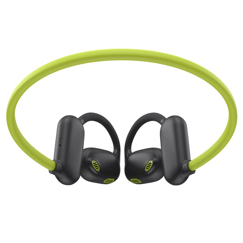 - Konstrukcja typu open-ear zapewnia wygodę noszenia i lepszą świadomość dźwięków otoczenia