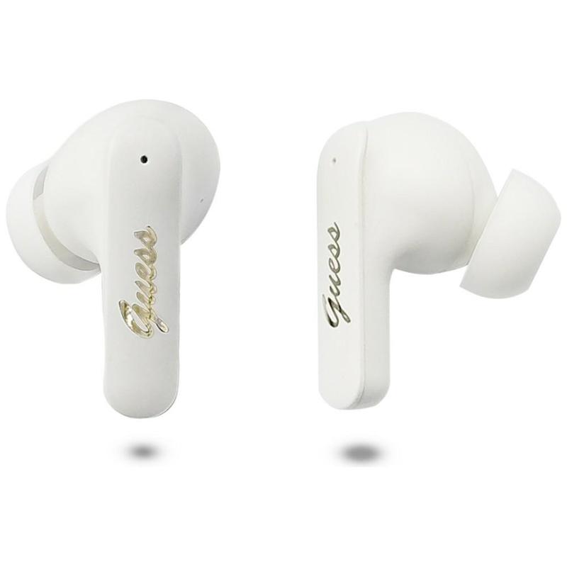 Słuchawki douszne Guess Script Metal Logo z technologią True Wireless, sterowaniem dotykowym i funkcją tłumaczenia na żywo