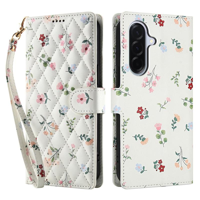Etui na portfel z rombowym wzorem kwiatowym do Samsung Galaxy A37 - z paskiem i kieszeniami na karty