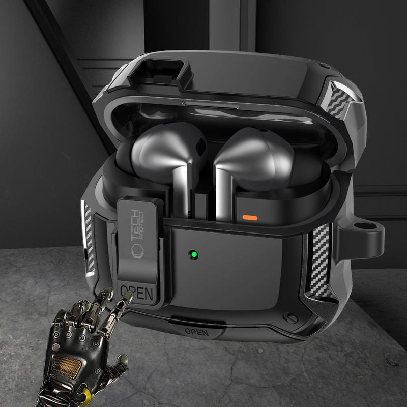 Etui Tech-Protect Carbonox do słuchawek Samsung Galaxy Buds3, Galaxy Buds3 Pro, Galaxy Buds3 FE - Wytrzymała ochrona z brelokiem do kluczy