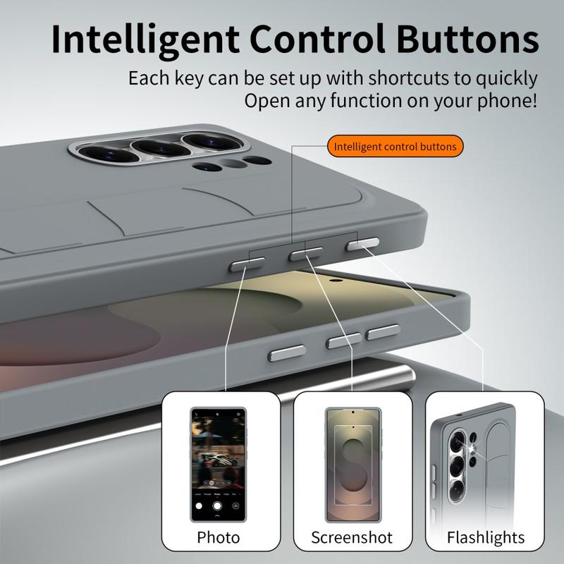 Smart hybrydowe etui ze stojącym uchwytem do Samsung Galaxy S23 Ultra - konfigurowalne klawisze skrótów NFC, podpórka na nadgarstek i ochrona aparatu ze stopu aluminium