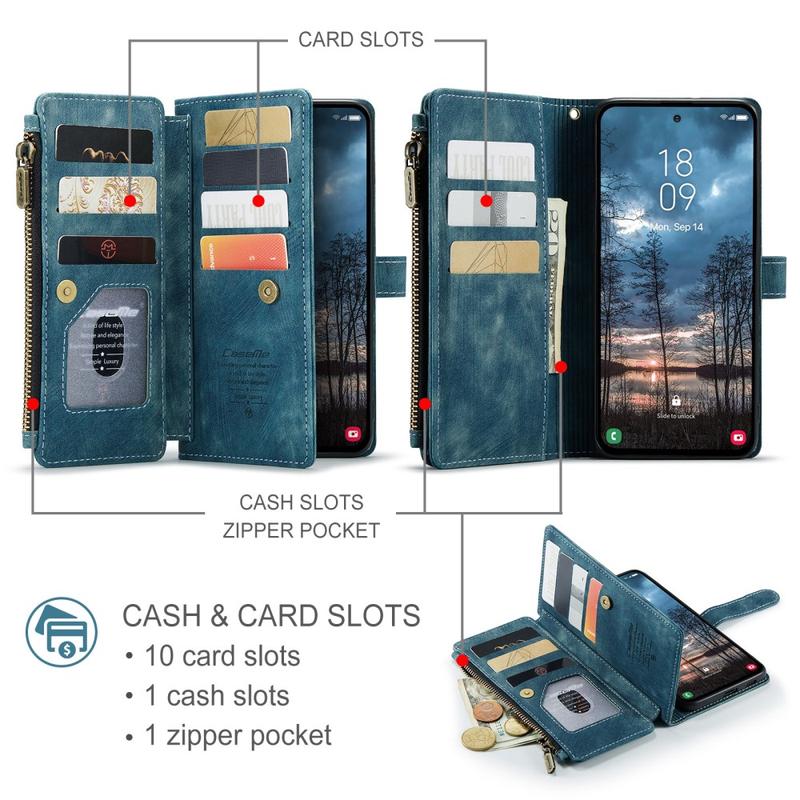 Wielofunkcyjne etui z portfelem Caseme C30 na Samsung Galaxy S25 Edge zapewnia niezrównaną, pełną ochronę i wyjątkowy, ekskluzywny wygląd. To eleganckie etui wykonano z wysokiej klasy poliuretanu i wzmocniono odporną na wstrząsy, wewnętrzną osłoną z TPU, która ściśle otula Twój Samsung Galaxy S25 Edge. Etui-portfel Caseme C30 ma kilka przegródek na karty, sporą, wewnętrzną kieszonkę na pieniądze oraz zamykaną na zamek, zewnętrzną kieszeń, a wszystko zabezpieczone zamknięciem na magnes.