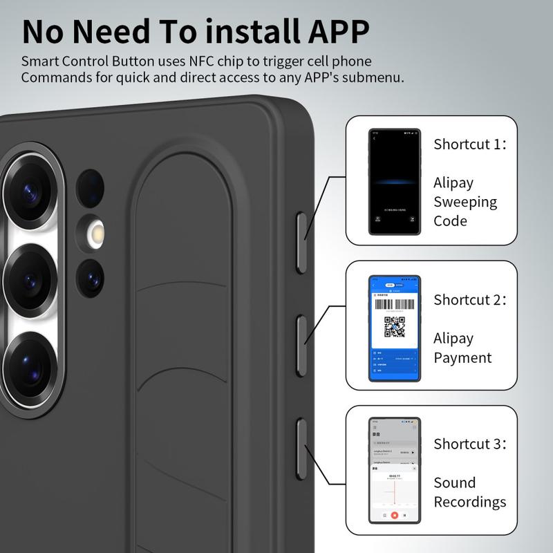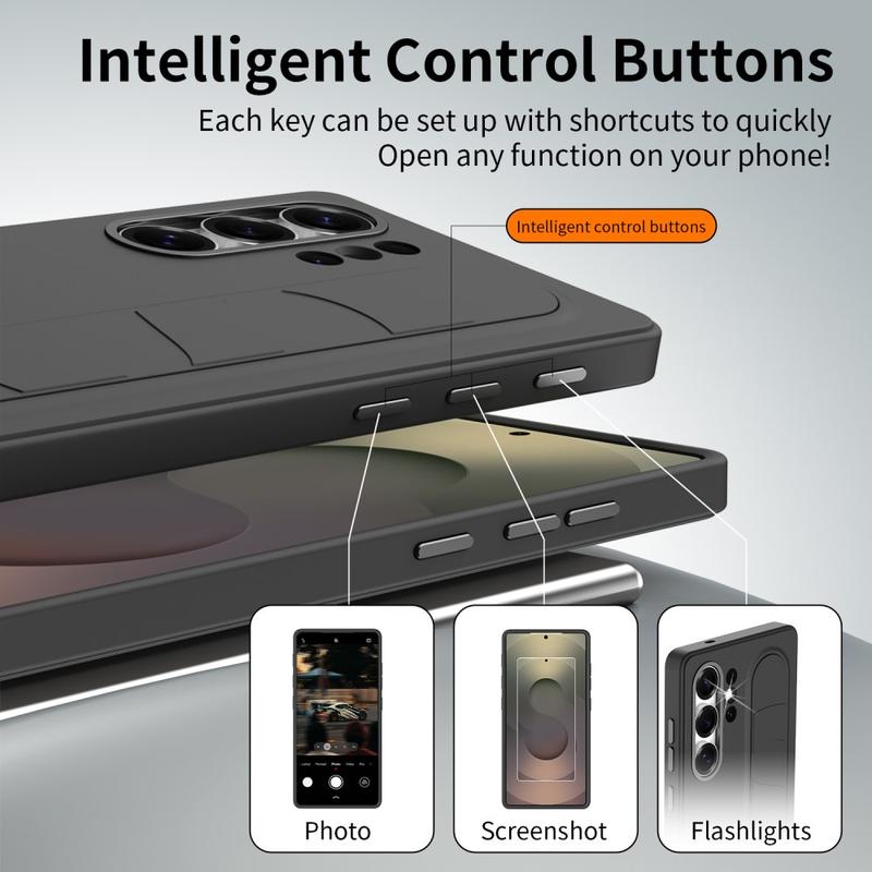 Smart hybrydowe etui ze stojącym uchwytem do Samsung Galaxy S26 Ultra - konfigurowalne klawisze skrótów NFC, podpórka na nadgarstek i ochrona aparatu ze stopu aluminium