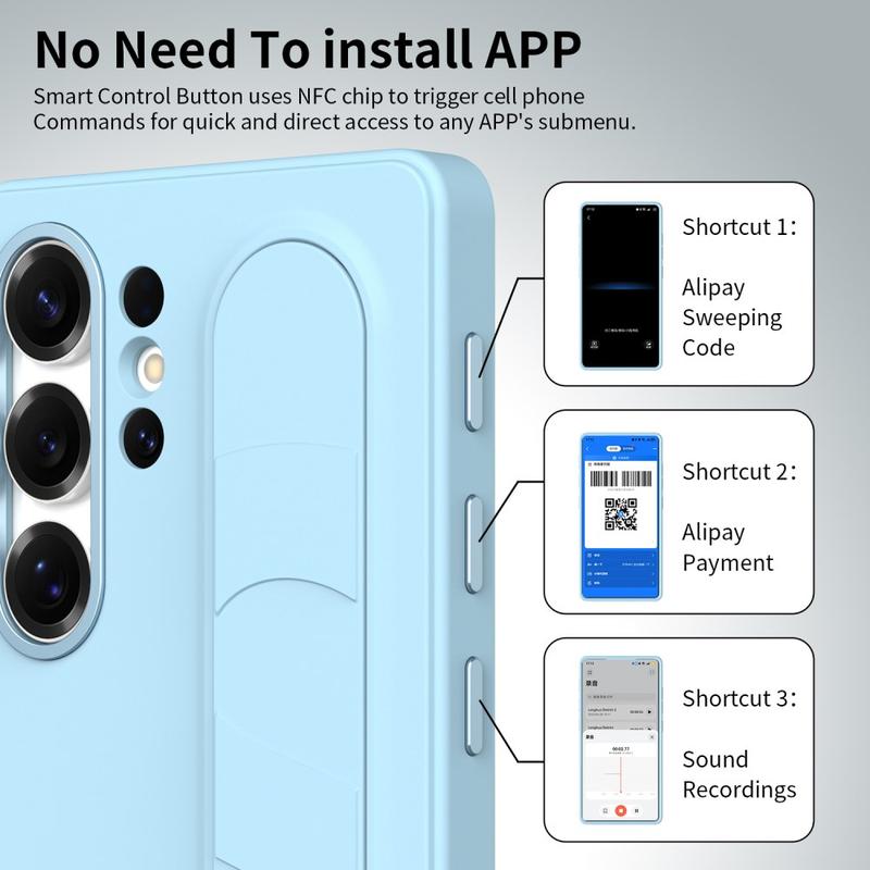 Smart hybrydowe etui ze stojącym uchwytem do Samsung Galaxy S26 Ultra - konfigurowalne klawisze skrótów NFC, podpórka na nadgarstek i ochrona aparatu ze stopu aluminium