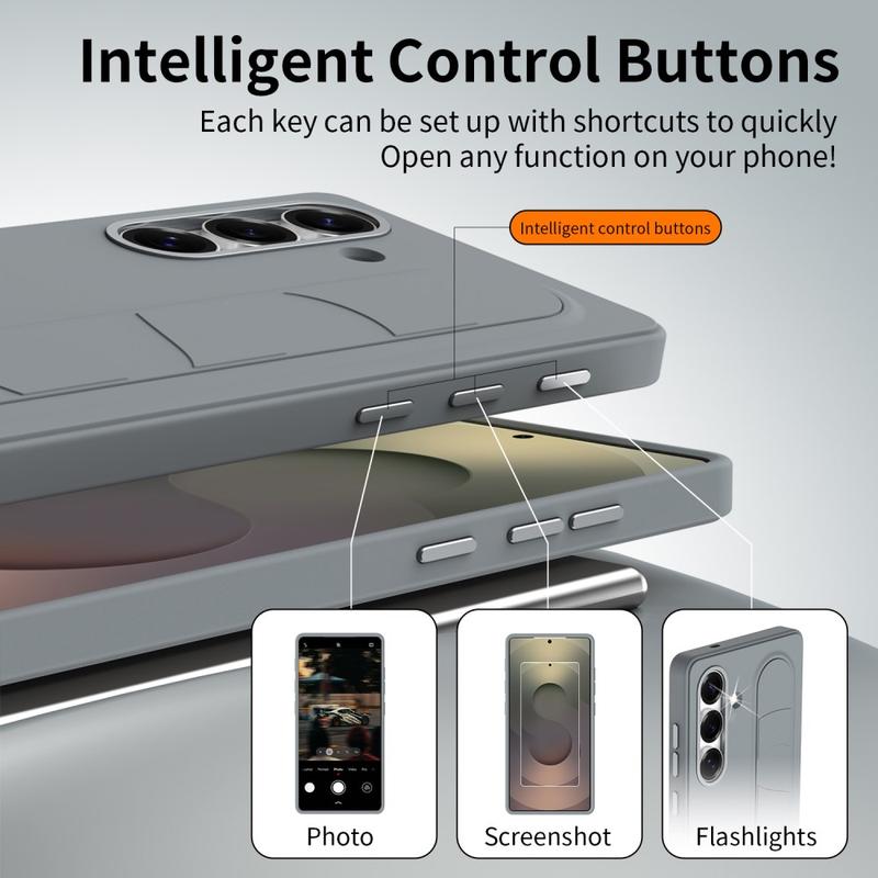 Smart hybrydowe etui ze stojącym uchwytem do Samsung Galaxy S26+ - konfigurowalne klawisze skrótów NFC, podpórka na nadgarstek i ochrona aparatu ze stopu aluminium