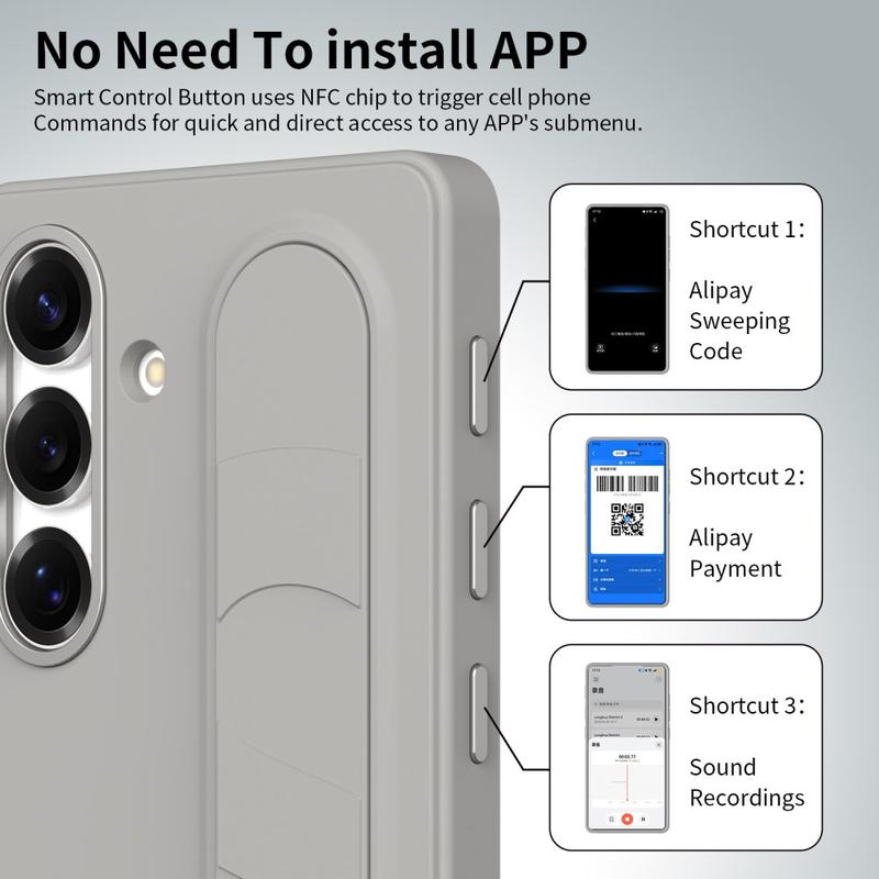 Smart hybrydowe etui ze stojącym uchwytem do Samsung Galaxy S26 - konfigurowalne klawisze skrótów NFC, podpórka na nadgarstek i ochrona aparatu ze stopu aluminium