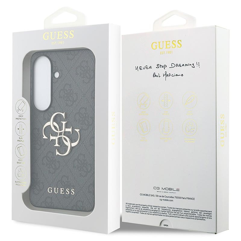 - Etui hybrydowe Guess 4G Big Metal Logo na Samsung Galaxy S26 z wytrzymałego TPU i poliuretanu