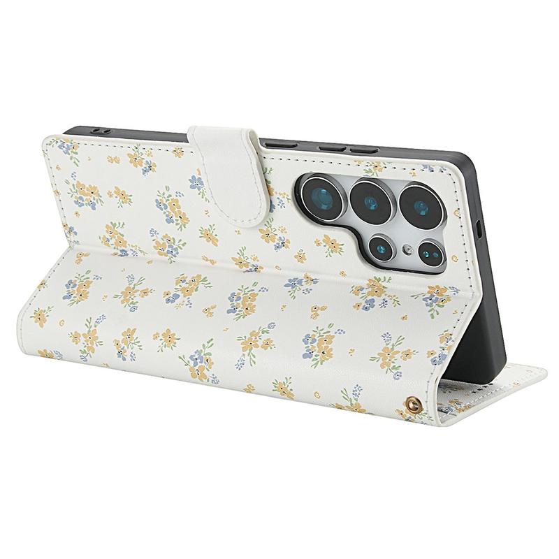 Etui na portfel z rombowym wzorem kwiatowym do Samsung Galaxy S26 Ultra - z paskiem i kieszeniami na karty