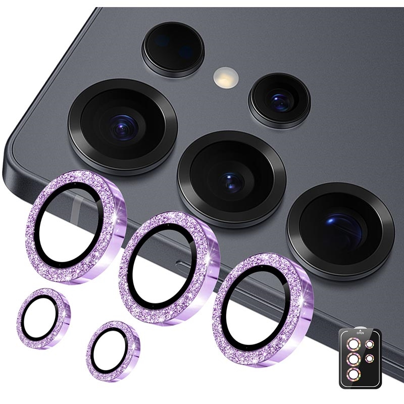 Osłona aparatu składa się z wysokiej klasy hartowanego szkła o twardości 9H, umieszczonego pod wytrzymałym pierścieniem ze stopu aluminium z ozdobnymi, połyskliwymi kryształkami. Została wykonana z precyzją i idealnie pasuje na obiektywy aparatu Samsung Galaxy S26 Ultra. Jest wysoce przejrzysta i nie wpływa na jakość zdjęć i nagrań.