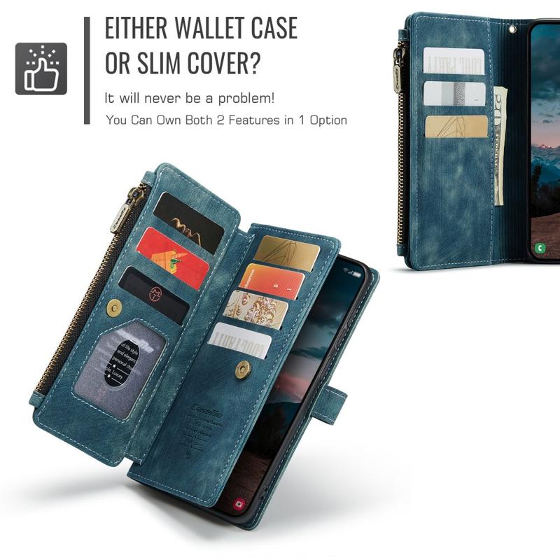 Wielofunkcyjne etui z portfelem Caseme C30 na Samsung Galaxy S26 zapewnia niezrównaną, pełną ochronę i wyjątkowy, ekskluzywny wygląd. To eleganckie etui wykonano z wysokiej klasy poliuretanu i wzmocniono odporną na wstrząsy, wewnętrzną osłoną z TPU, która ściśle otula Twój Samsung Galaxy S26. Etui-portfel Caseme C30 ma kilka przegródek na karty, sporą, wewnętrzną kieszonkę na pieniądze oraz zamykaną na zamek, zewnętrzną kieszeń, a wszystko zabezpieczone zamknięciem na magnes.