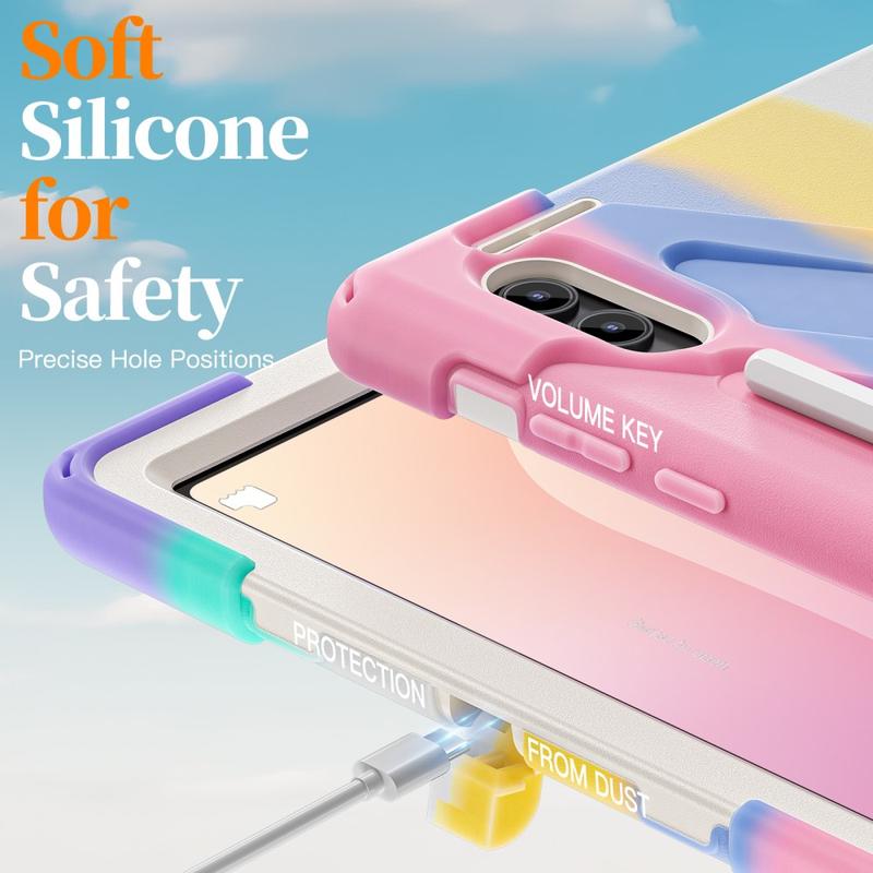 Chroń tablet Samsung Galaxy Tab S11 Ultra przed typowymi uszkodzeniami za pomocą fantastycznego etui Heavy Duty 360! To modne akcesorium z wewnętrzną, antypoślizgową podszewką i zintegrowaną, obrotową podpórką umożliwia oglądanie multimediów w trybie krajobrazu lub portretu bez konieczności trzymania urządzenia. Ramkę oraz wewnętrzną osłonę wykonano z tworzywa sztucznego, a powierzchnię zewnętrzną z miękkiego silikonu. Ta kombinacja zapewnia doskonałą ochronę przed skutkami upadków, a także innymi uszkodzeniami. Popularne, hybrydowe etui ochronne będzie stanowić idealny dodatek dla Twojego urządzenia.