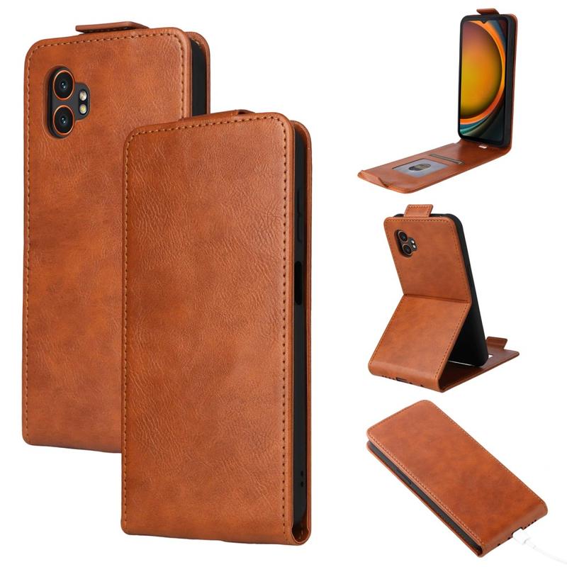 Pionowe etui z klapką dla Samsung Galaxy XCover7 Pro - magnetyczne zamknięcie, funkcja podstawki, uchwyt na karty
