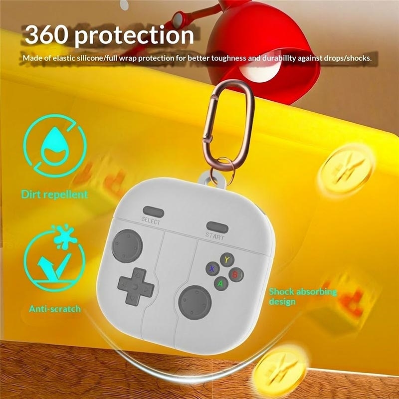 Silikonowe etui Retro Gamepad z karabińczykiem do słuchawek Samsung Galaxy Buds 4, Galaxy Buds 4 Pro - silikonowa osłona ochronna do słuchawek dousznych
