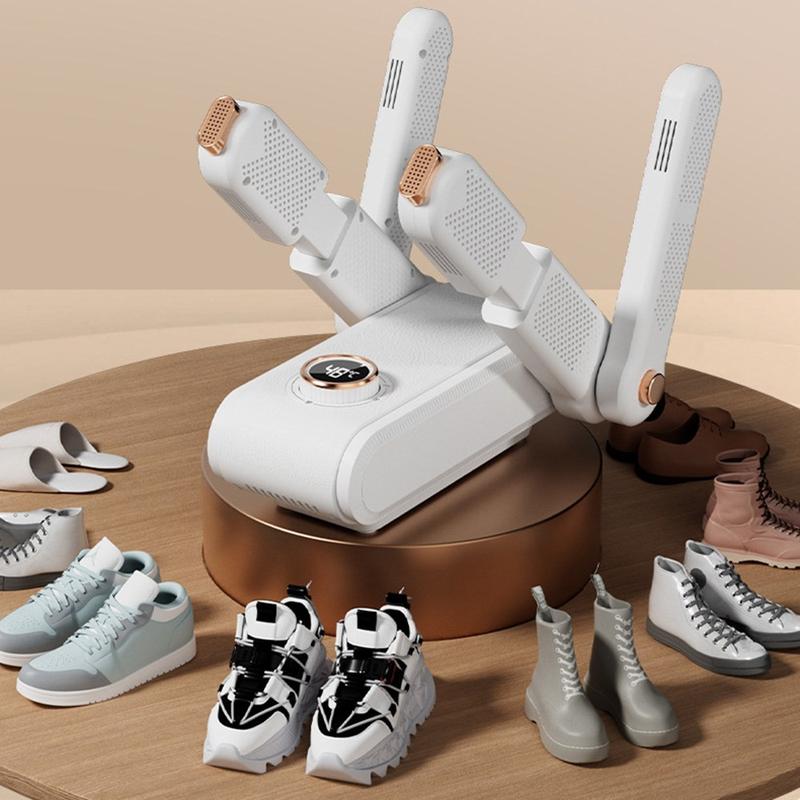 Składana 4-ramienna suszarka do butów z timerem - suszy 2 pary butów jednocześnie, cyrkulacja ciepła 360°, inteligentna regulacja temperatury, szybkie osuszanie (150 W)