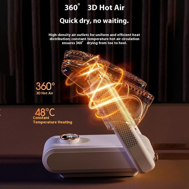 - Cyrkulacja ciepła 360° zapewnia szybkie i równomierne suszenie wewnątrz obuwia