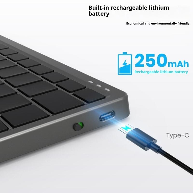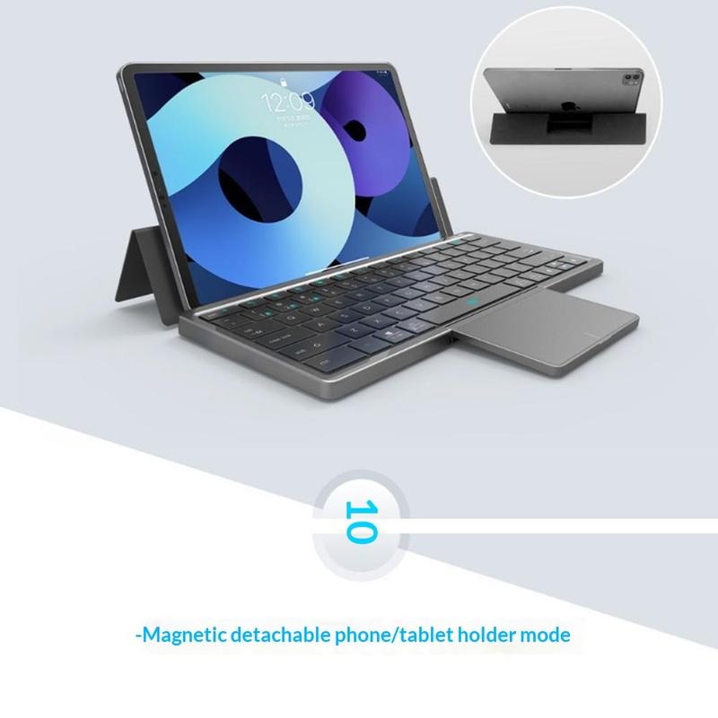 Składana klawiatura bezprzewodowa KF 8700 z panelem dotykowym i poliuretanowym etui - kompatybilna z wieloma urządzeniami przez Bluetooth, ładowana przez USB-C
