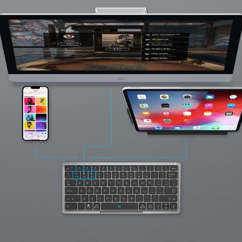 - Bezprzewodowa klawiatura kompatybilna z technologią Bluetooth, obsługująca do trzech podłączonych urządzeń