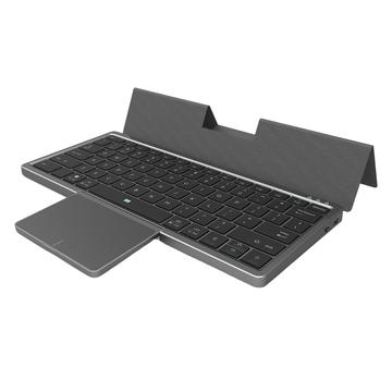 Składana klawiatura bezprzewodowa KF 8700 z panelem dotykowym i poliuretanowym etui - kompatybilna z wieloma urządzeniami przez Bluetooth, ładowana przez USB-C