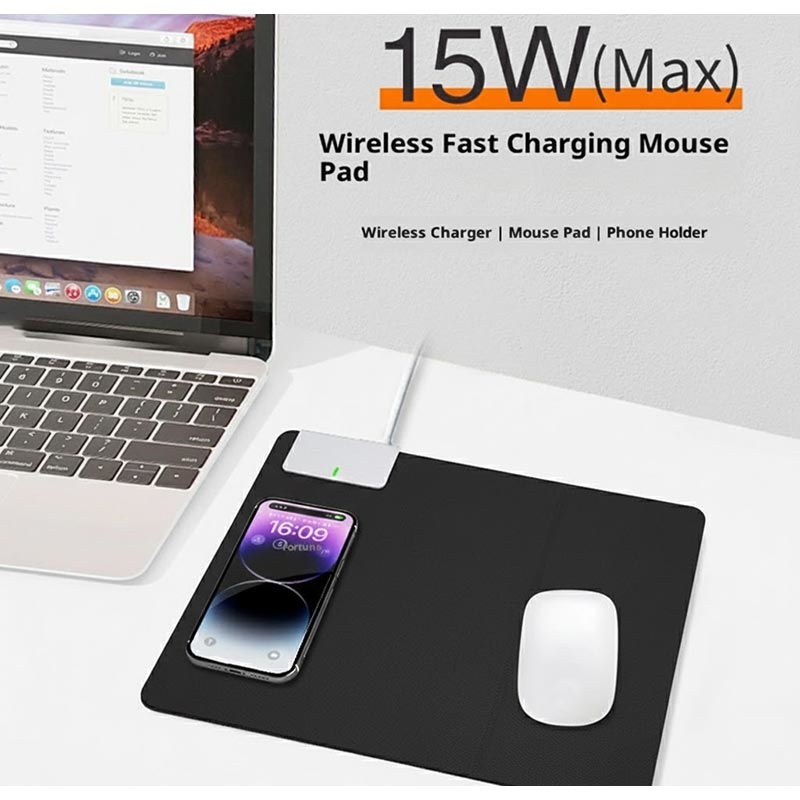 Ta podkładka pod mysz zapewnia wygodę, wydajność i inteligentną funkcjonalność w jednym eleganckim akcesorium. Eliminuje potrzebę stosowania oddzielnych ładowarek i podstawek, pomagając utrzymać porządek w miejscu pracy, jednocześnie zapewniając, że telefon pozostaje zasilany i widoczny przez cały dzień.