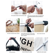 Prosta konstrukcja X-frame zatrzaskuje się bez wysiłku. Przymocuj pokrowiec z tkaniny za pomocą pasków z rzepami i jest gotowy do użycia.