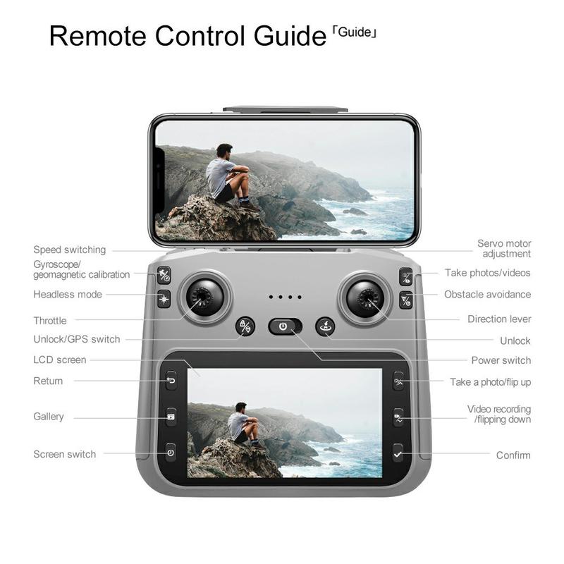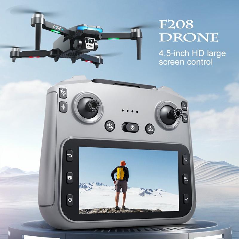 Składany dron GPS F208 z pilotem wyposażonym w ekran o przekątnej 4,5 cala - kamera 720p, system omijania przeszkód, tryb FPV z łączem 5G WiFi, 1 akumulator