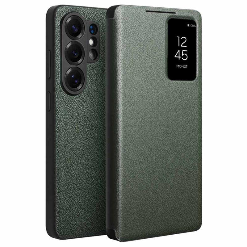 Luksusowe etui Qialino Smart View na Samsung Galaxy S26 Ultra uszyto z naturalnej skóry bydlęcej, co zapewnia mu stylowy, elegancki wygląd. Smukłe, klasyczne, skórzane etui obsługuje inteligentną funkcję wybudzania i usypiania Samsung Galaxy S26 Ultra, a małe okienko w przedniej klapce pozwala szybko sprawdzić niezbędne informacje. Idealnie pasuje na Samsung Galaxy S26 Ultra i pozwala na jego wygodną obsługę.