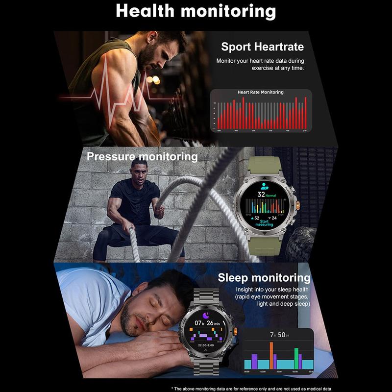 T53 1,43" Smartwatch AMOLED z funkcją połączeń Bluetooth - wodoodporny zegarek sportowy IP68, monitorowanie tętna, ciśnienia krwi i SpO2, 400 mAh