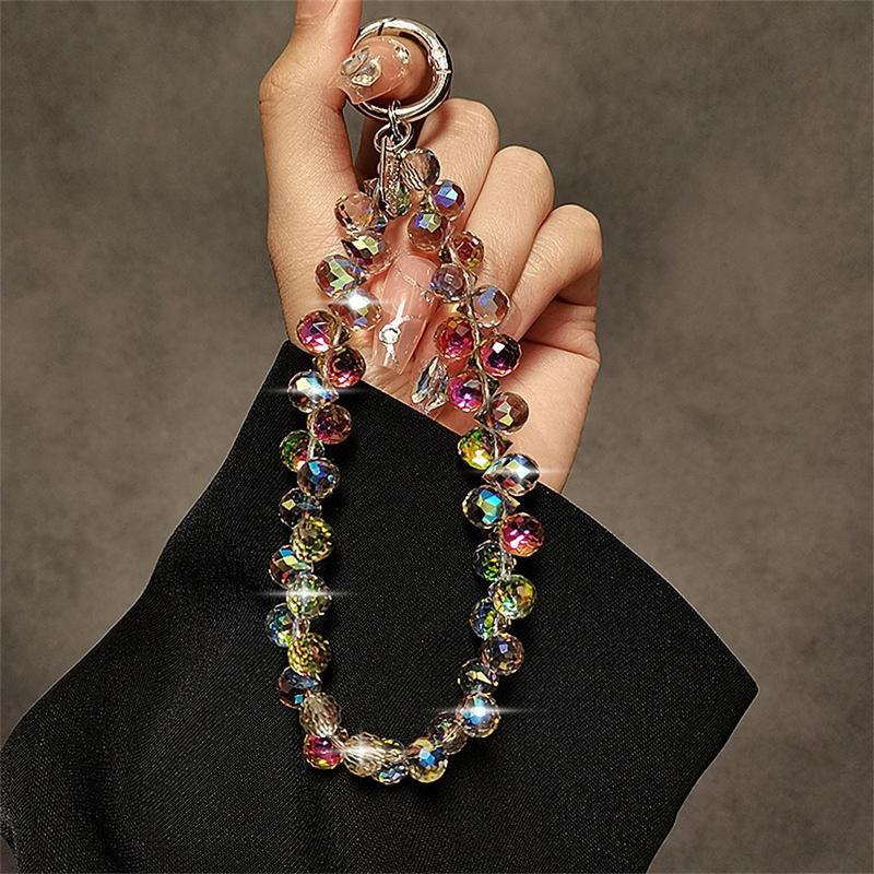 Łańcuszek na telefon z kryształowymi koralikami o długości 14cm - smycz na nadgarstek z brelokiem i przezroczystą pętelką