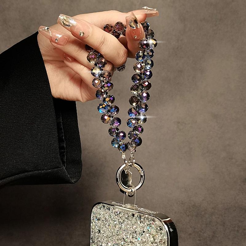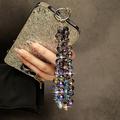 Łańcuszek na telefon z kryształowymi koralikami o długości 14cm - smycz na nadgarstek z brelokiem i przezroczystą pętelką