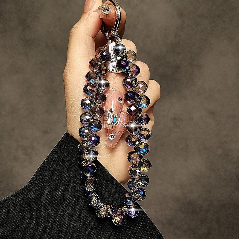 Łańcuszek na telefon z kryształowymi koralikami o długości 14cm - smycz na nadgarstek z brelokiem i przezroczystą pętelką