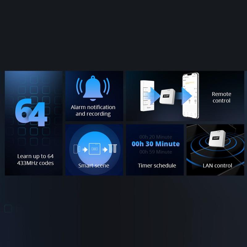 - Możliwość dodania do 64 urządzeń Sonoff RF 433MHz w celu rozszerzenia zasięgu inteligentnego domu