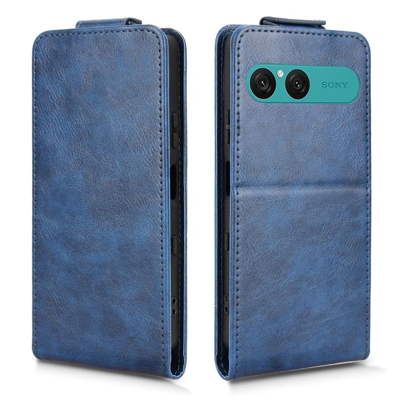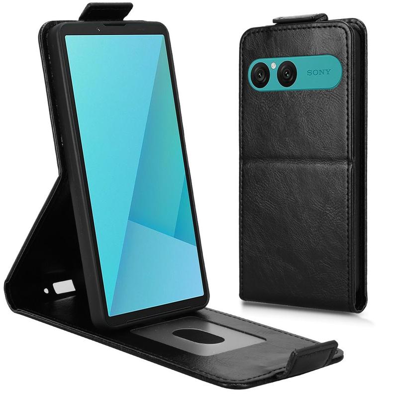 Pionowe etui z klapką dla Sony Xperia 10 VII - magnetyczne zamknięcie, funkcja podstawki, uchwyt na karty