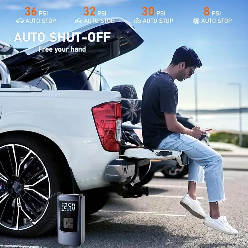 Przenośna pompka samochodowa ST-9624A to kompaktowa i praktyczna sprężarka powietrza przeznaczona do szybkiego i wygodnego pompowania opon w trasie. Dzięki inteligentnemu cyfrowemu wyświetlaczowi ciśnienia, przenośnym rozmiarom i niezawodnej wydajności przepływu powietrza jest to przydatne narzędzie, które warto mieć w samochodzie podczas codziennych przejazdów, dłuższych podróży oraz w nieoczekiwanych sytuacjach związanych z niskim ciśnieniem w oponach. Obsługa dwóch napięć zapewnia dodatkową elastyczność, a dołączone końcówki sprawiają, że urządzenie nadaje się nie tylko do opon samochodowych.