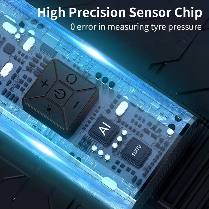 - Inteligentny wyświetlacz cyfrowy wyraźnie pokazuje ciśnienie w oponach z dokładnością do 1,5 PSI, co pozwala na bardziej precyzyjne pompowanie.