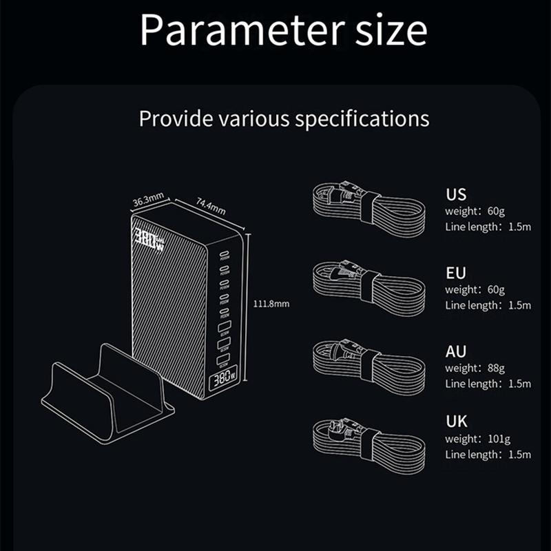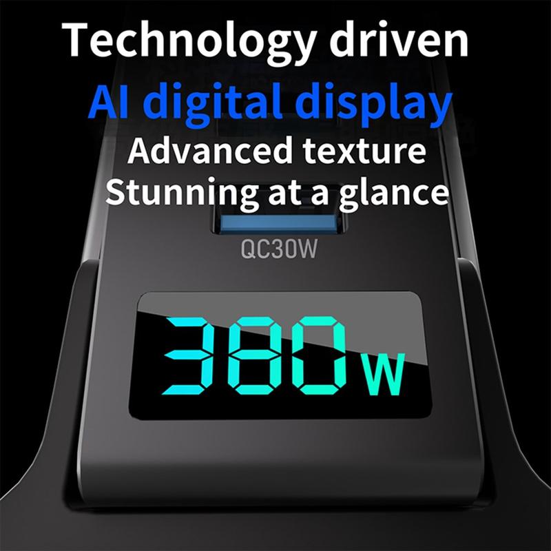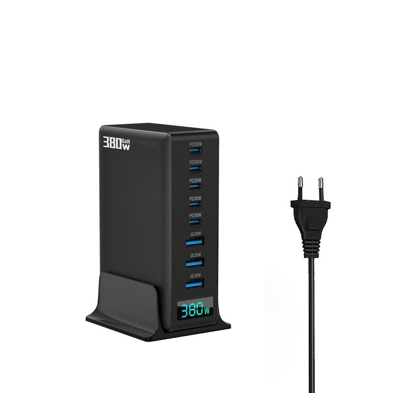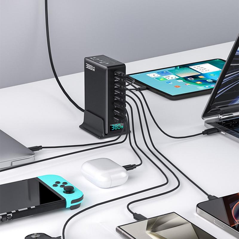 Stacja ładująca GaN o mocy 380W z cyfrowym wyświetlaczem mocy - 8 portów (5x USB-C + 3x USB-A), szybka ładowarka USB-C o mocy do 100 W