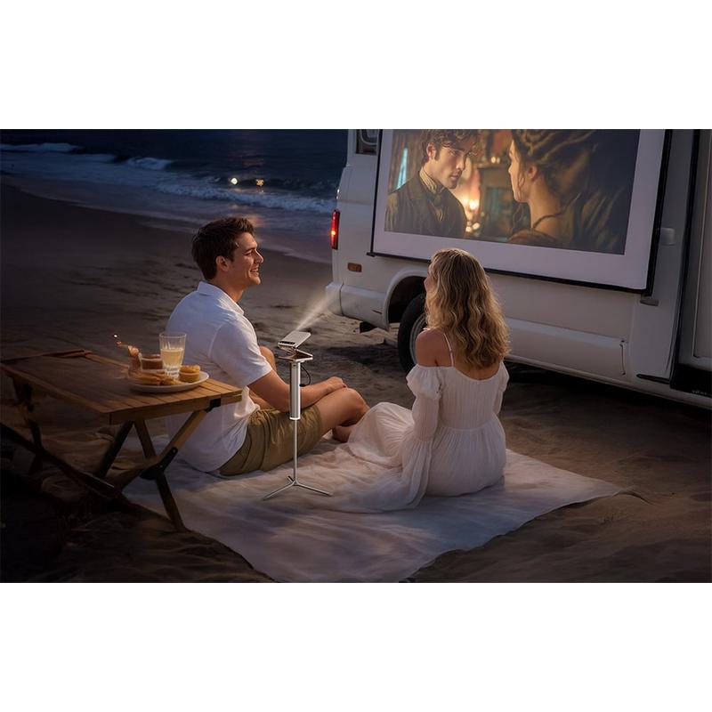 Prawdziwą zaletą jest wbudowany power bank o pojemności 10000mAh, który pozwala na jednoczesne zasilanie i korzystanie z projektora. Może on wydłużyć czas pracy projektora nawet o 3 godziny i obsługuje szybkie ładowanie PD (wymagany adapter o mocy co najmniej 35 W), co czyni go inteligentnym wyborem podczas podróży, wieczorów filmowych i w sytuacjach, gdy w pobliżu nie ma gniazdka ściennego. Odłączany uchwyt magnetyczny umożliwia szybkie mocowanie i zdejmowanie, a antypoślizgowa podstawa zapewnia stabilność statywu na różnych powierzchniach. Subtelne podświetlenie ułatwia również obsługę urządzenia po zmroku.