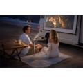- Wieczór filmowy na świeżym powietrzu: umieść podstawę na ziemi, ustaw wysokość na 33 cm lub 43 cm i zasilaj projektor z wbudowanej baterii