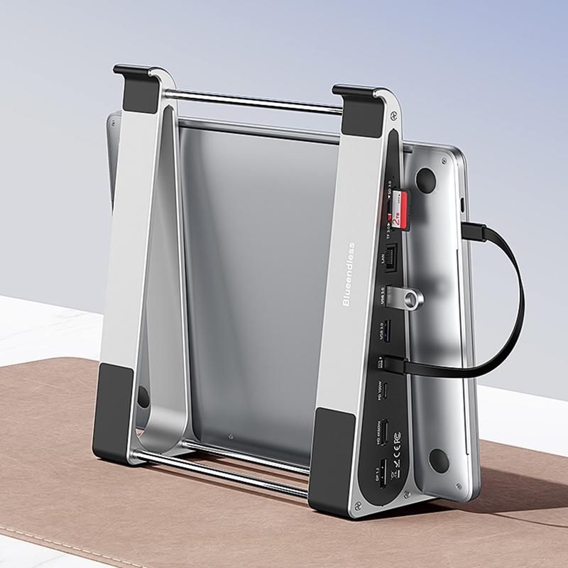 Blueendless ST708 łączy w sobie dwa niezbędne narzędzia w jednym kompaktowym akcesorium: stabilną, ergonomiczną podstawkę pod laptopa i wszechstronny hub USB-C. Poprawia postawę, utrzymuje porządek na biurku i rozszerza możliwości podłączenia wyświetlaczy, urządzeń pamięci masowej i akcesoriów, jednocześnie ładując laptopa przez to samo złącze.