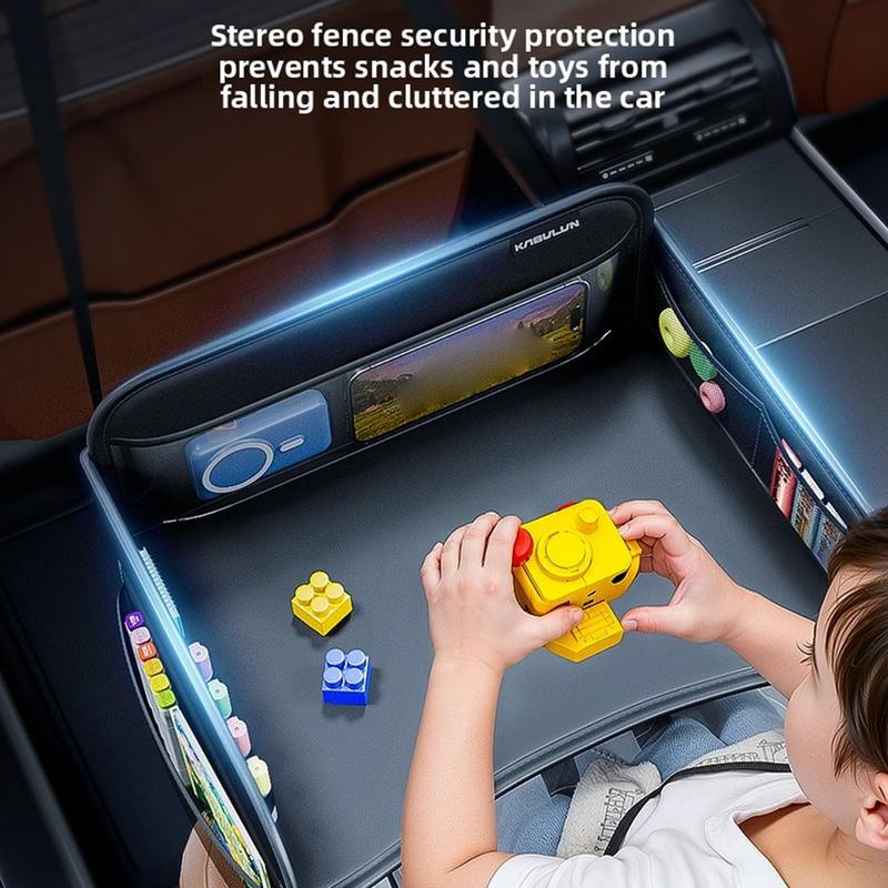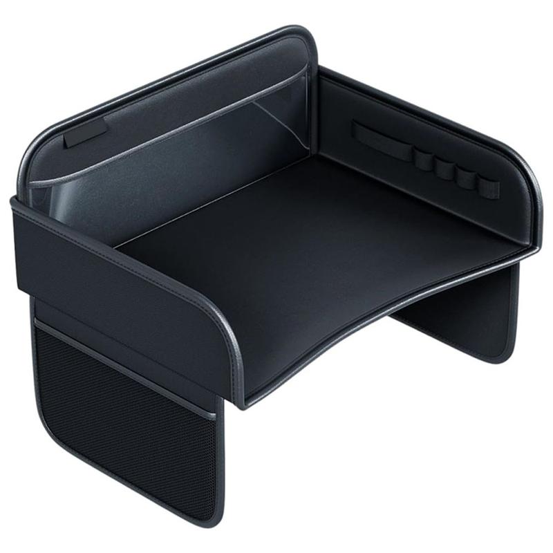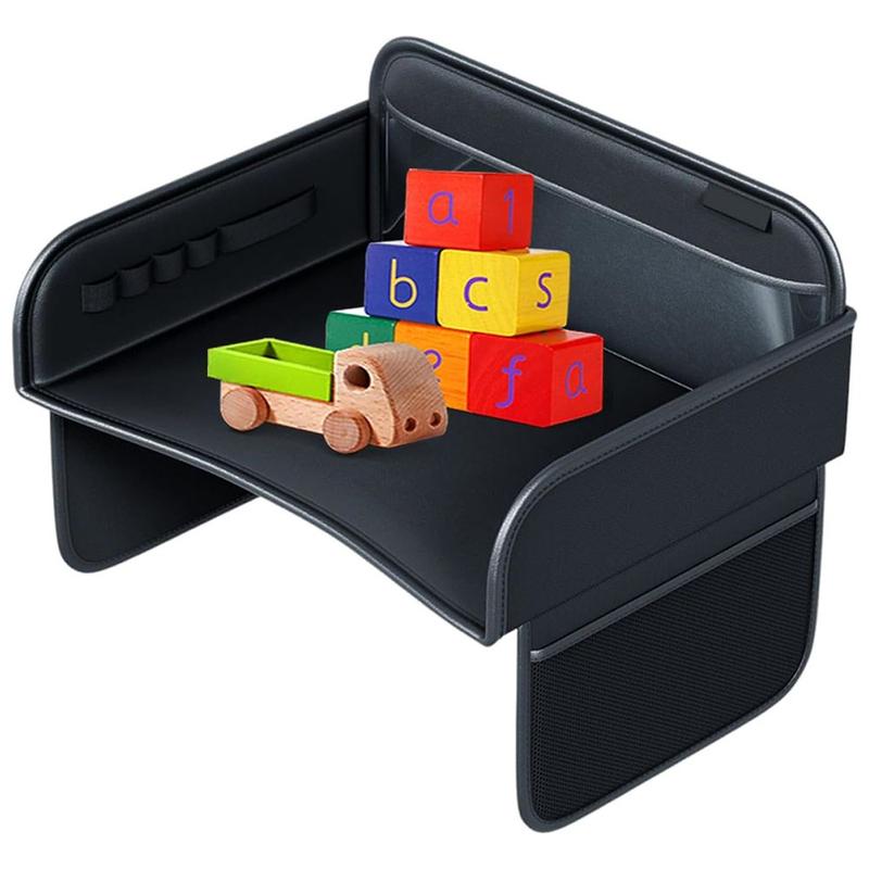 - Wielofunkcyjna konstrukcja łącząca tackę podróżną dla dzieci z organizerem na oparcie fotela samochodowego