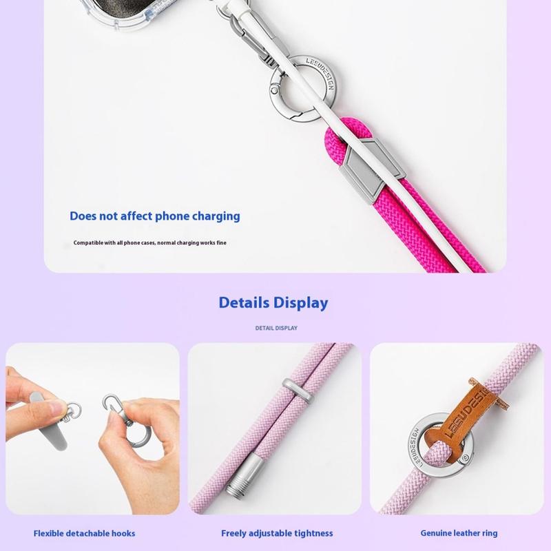 LEEU DESIGN Crossbody Phone Lanyard to idealne połączenie wygody, wytrzymałości i stylu. Dzięki wytrzymałym materiałom, regulowanej długości i bezpiecznej zakładce na uwięzi, została zaprojektowana dla każdego, kto ceni zarówno funkcjonalność, jak i modę w swoich akcesoriach.