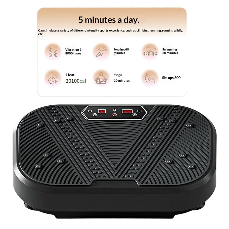 Płyta wibracyjna SZJ-04 łączy w sobie wiele koncepcji treningowych w jednym kompaktowym urządzeniu, symulując działanie bieżni, roweru treningowego, masażu powięziowego i pasa wibracyjnego. Jest przeznaczona do treningu całego ciała, modelowania sylwetki i codziennej aktywności w domu.