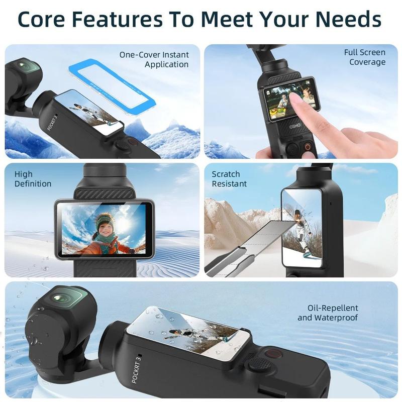 Ten trzyczęściowy zestaw osłon ekranu ze szkła hartowanego do aparatu DJI Osmo Pocket 3 został zaprojektowany tak, aby chronić ekran aparatu przed zadrapaniami, odciskami palców i codziennym zużyciem, nie wpływając przy tym na klarowność obrazu ani czułość ekranu dotykowego. Wykonane z wytrzymałego szkła hartowanego o twardości 9H, te folie ochronne stanowią praktyczny sposób na utrzymanie ekranu aparatu w lepszym stanie podczas podróży, filmowania i użytkowania na świeżym powietrzu.